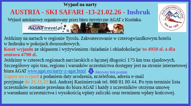 Jesienią przygotowujemy się do sezonu narciarskiego pod fachowym okiem instruktora na "zaprawkach" w Lesie Łagiewnickim (informacje w komunikatach).